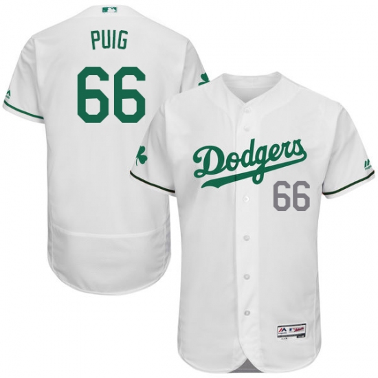 Men's Majestic Los Angeles Dodgers #66 Yasiel Puig White Celtic Flexbase Authentic Collection MLB Jersey