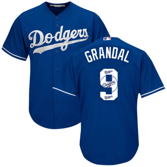 Home>MLB>Los Angeles Dodgers>Yasmani Grandal>Men's Majestic Los Angeles Dodgers #9 Yasmani Grandal Authentic Royal Blue Team Logo Fashion Cool Base MLB Jersey