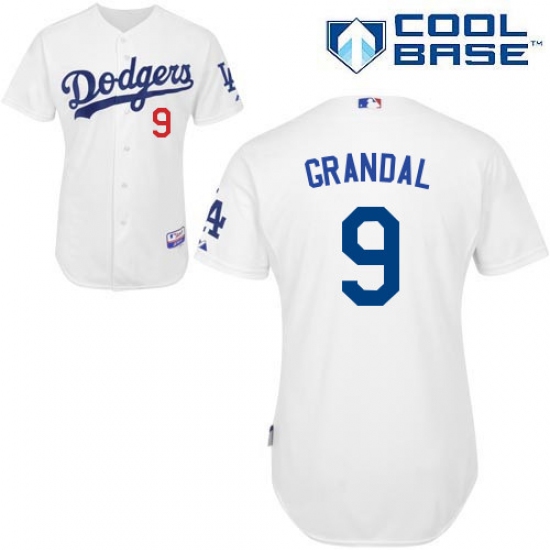 Men's Majestic Los Angeles Dodgers #9 Yasmani Grandal Replica White Home Cool Base MLB Jersey