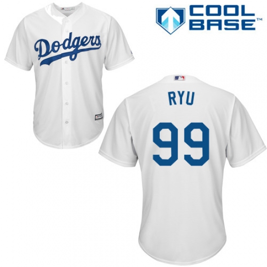 Home>MLB>Los Angeles Dodgers>Hyun-Jin Ryu>Men's Majestic Los Angeles Dodgers #99 Hyun-Jin Ryu Replica White Home Cool Base MLB Jersey
