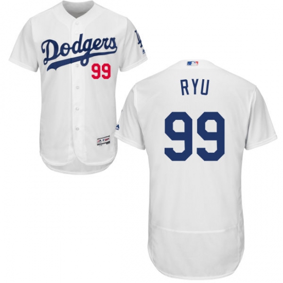 Men's Majestic Los Angeles Dodgers #99 Hyun-Jin Ryu White Home Flex Base Authentic Collection MLB Jersey