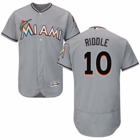 Men's Majestic Miami Marlins #10 JT Riddle Grey Road Flex Base Authentic Collection MLB Jersey