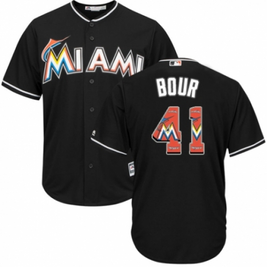 Men's Majestic Miami Marlins #41 Justin Bour Authentic Black Team Logo Fashion Cool Base MLB Jersey