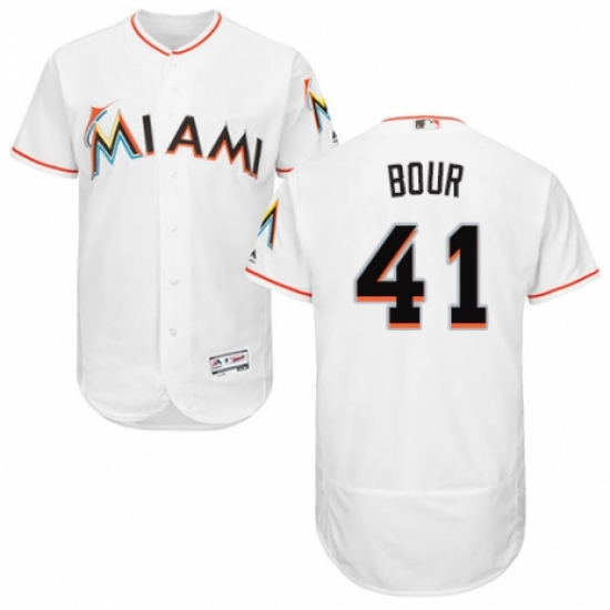 Men's Majestic Miami Marlins #41 Justin Bour White Home Flex Base Authentic Collection MLB Jersey