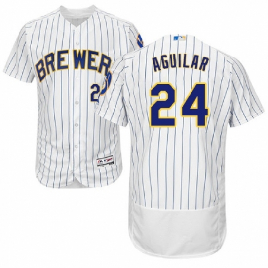 Men's Majestic Milwaukee Brewers #24 Jesus Aguilar White Home Flex Base Authentic Collection MLB Jersey