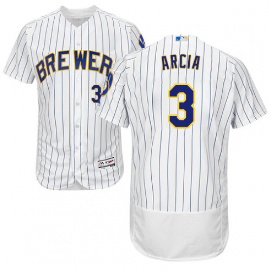 Men's Majestic Milwaukee Brewers #3 Orlando Arcia White/Royal Flexbase Authentic Collection MLB Jersey