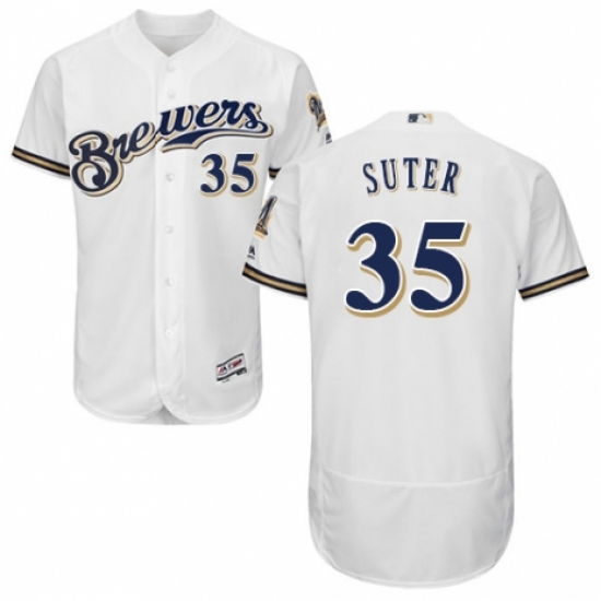 >Men's Majestic Milwaukee Brewers #35 Brent Suter Navy Blue Alternate Flex Base Authentic Collection MLB Jersey