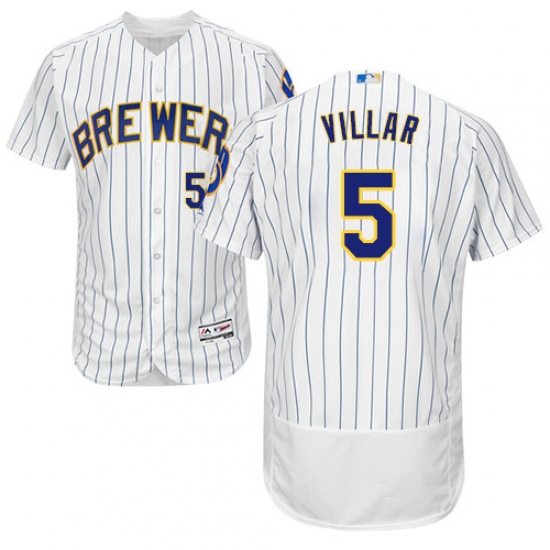 Men's Majestic Milwaukee Brewers #5 Jonathan Villar White/Royal Flexbase Authentic Collection MLB Jersey