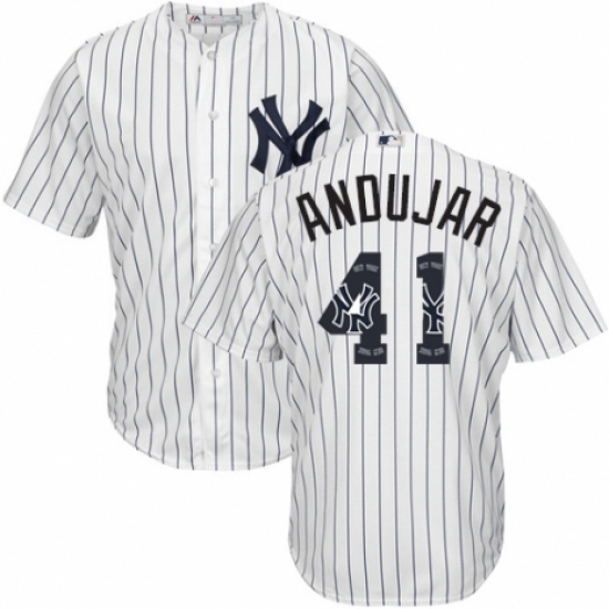 Men's Majestic New York Yankees #41 Miguel Andujar Authentic White Team Logo Fashion MLB Jersey