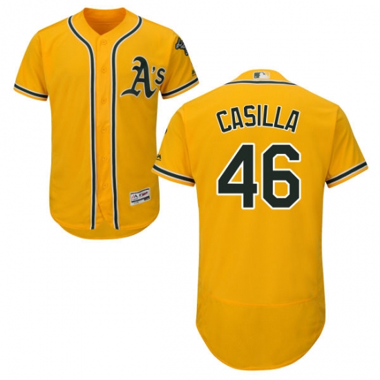 Home>MLB>Oakland Athletics>Santiago Casilla>Men's Majestic Oakland Athletics #46 Santiago Casilla Gold Flexbase Authentic Collection MLB Jersey
