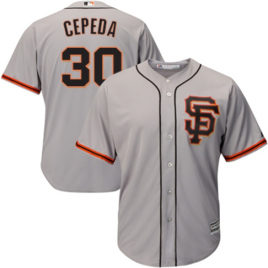 Men's Majestic San Francisco Giants #30 Orlando Cepeda Replica Grey Road 2 Cool Base MLB Jersey