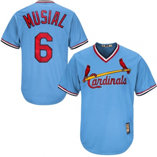Men's Majestic St. Louis Cardinals #6 Stan Musial Replica Light Blue Cooperstown MLB Jersey