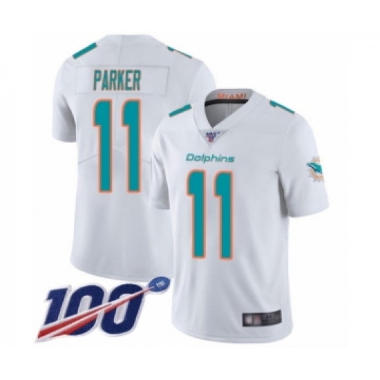 Men's Miami Dolphins #11 DeVante Parker White Vapor Untouchable Limited Player 100th Season Football Jersey