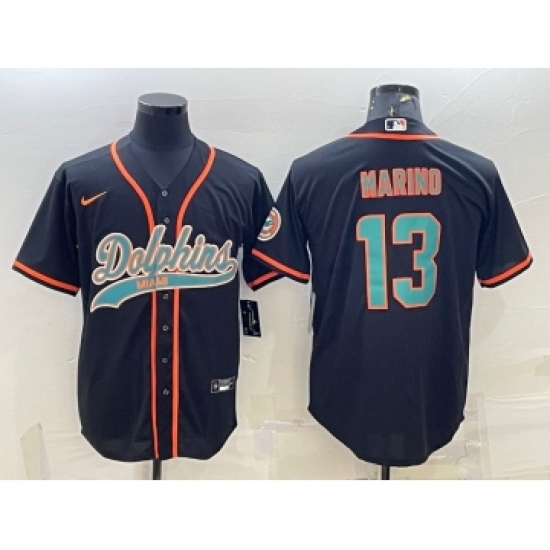 Men's Miami Dolphins #13 Dan Marino Black With Patch Cool Base Stitched Baseball Jersey