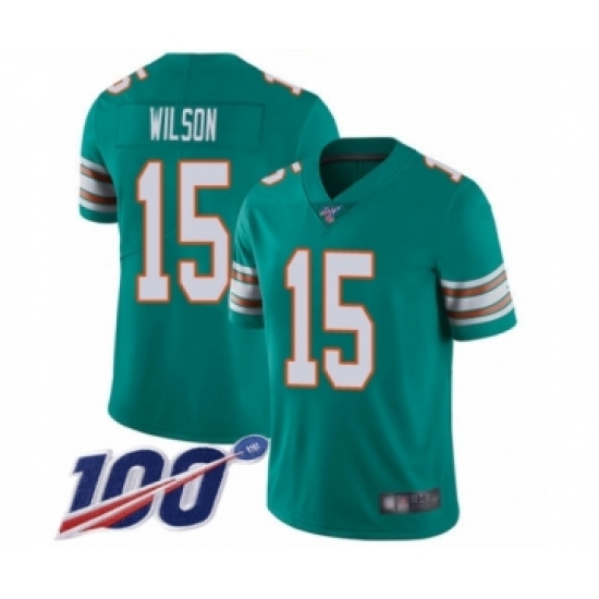 Men's Miami Dolphins #15 Albert Wilson Aqua Green Alternate Vapor Untouchable Limited Player 100th Season Football Jersey