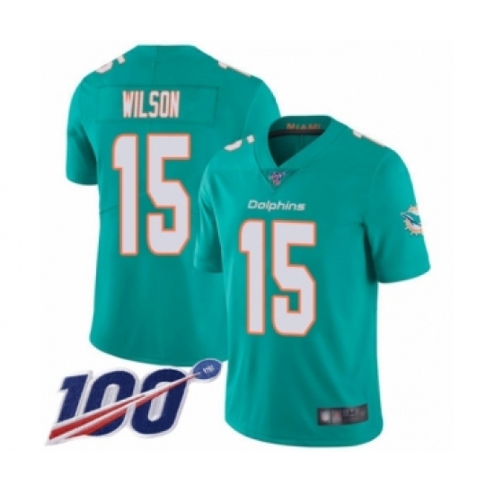 >Men's Miami Dolphins #15 Albert Wilson Aqua Green Team Color Vapor Untouchable Limited Player 100th Season Football Jersey