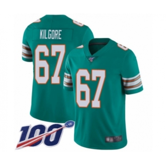 Men's Miami Dolphins #67 Daniel Kilgore Aqua Green Alternate Vapor Untouchable Limited Player 100th Season Football Jersey
