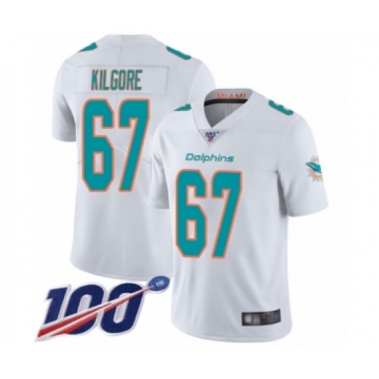 >Men's Miami Dolphins #67 Daniel Kilgore White Vapor Untouchable Limited Player 100th Season Football Jersey