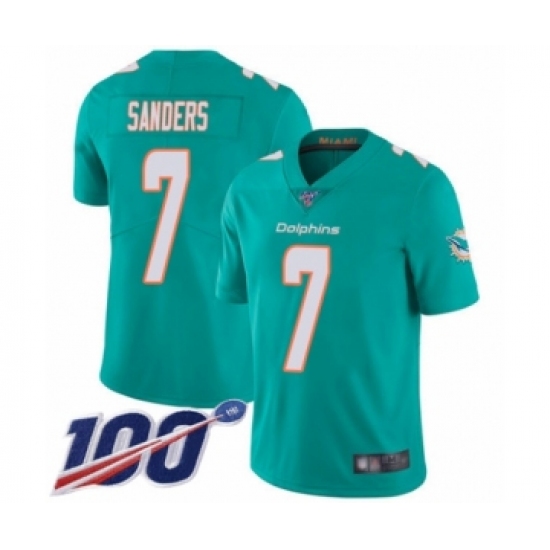 Men's Miami Dolphins #7 Jason Sanders Aqua Green Team Color Vapor Untouchable Limited Player 100th Season Football Jersey