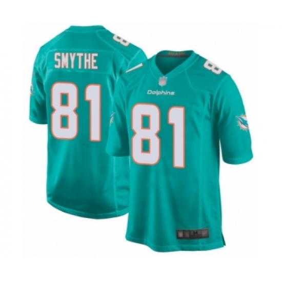 Men's Miami Dolphins #81 Durham Smythe Game Aqua Green Team Color Football Jersey