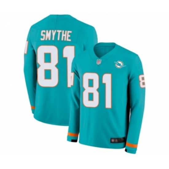 Men's Miami Dolphins #81 Durham Smythe Limited Aqua Therma Long Sleeve Football Jersey