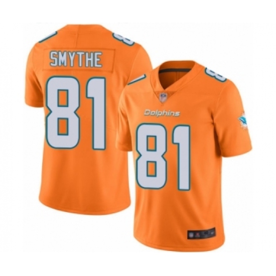 >Men's Miami Dolphins #81 Durham Smythe Limited Orange Rush Vapor Untouchable Football Jersey