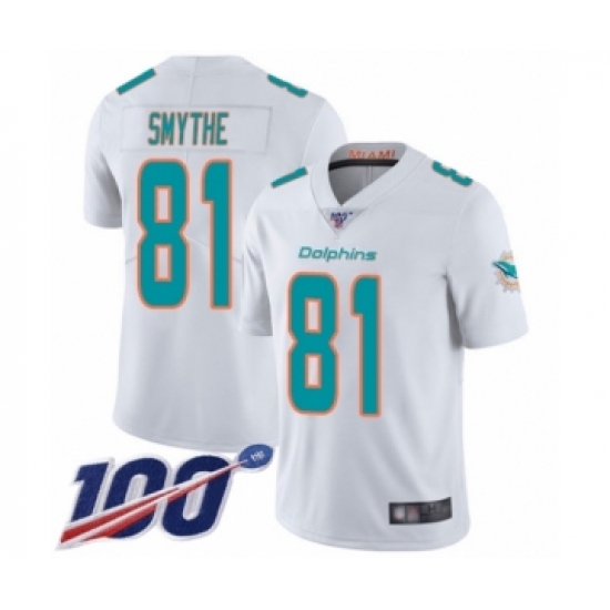 Men's Miami Dolphins #81 Durham Smythe White Vapor Untouchable Limited Player 100th Season Football Jersey