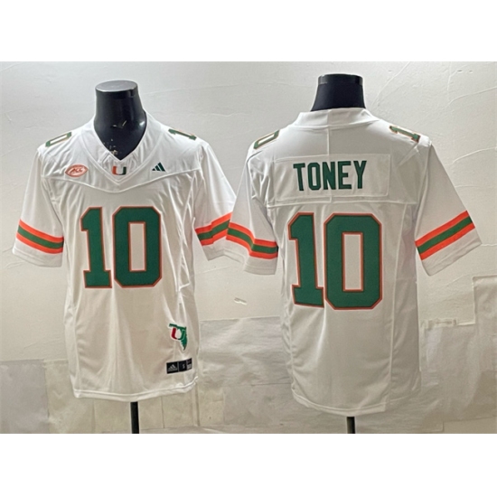 >Men's Miami Hurricanes #10 Malachi Toney White F.U.S.E. Florida Patch Stitched Football Jersey