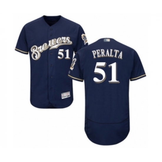 Men's Milwaukee Brewers #51 Freddy Peralta Navy Blue Alternate Flex Base Authentic Collection Baseball Player Jersey
