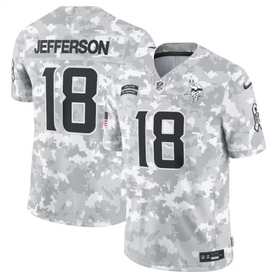 Men's Minnesota Vikings #18 Justin Jefferson 2024 Arctic Camo Salute To Service Limited Stitched Football Jersey