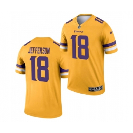 Men's Minnesota Vikings #18 Justin Jefferson Gold 2021 Inverted Legend Stitched Jersey