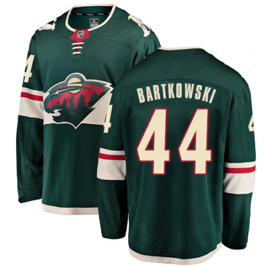 >Men's Minnesota Wild #44 Matt Bartkowski Authentic Green Home Fanatics Branded Breakaway NHL Jersey