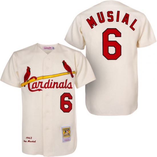 Men's Mitchell and Ness 1963 St. Louis Cardinals #6 Stan Musial Authentic Cream Throwback MLB Jersey