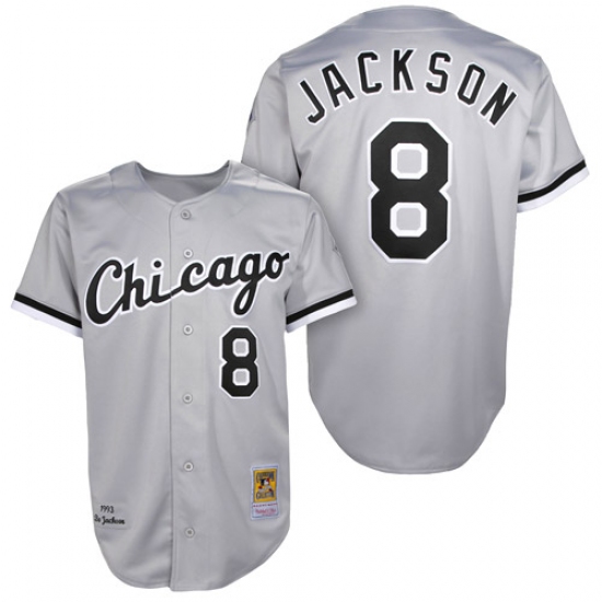 Men's Mitchell and Ness 1993 Chicago White Sox #8 Bo Jackson Replica Grey Throwback MLB Jersey