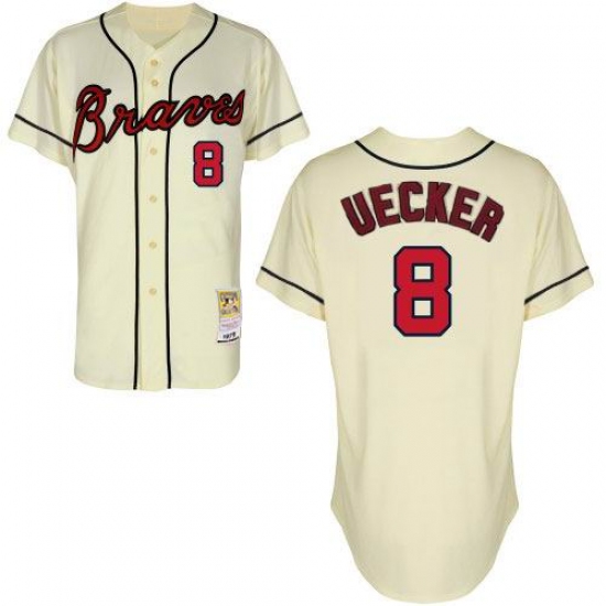 Home>MLB>Atlanta Braves>Bob Uecker>Men's Mitchell and Ness Atlanta Braves #8 Bob Uecker Authentic Cream Throwback MLB Jersey