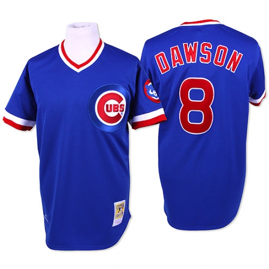 Men's Mitchell and Ness Chicago Cubs #8 Andre Dawson Authentic Blue Throwback MLB Jersey