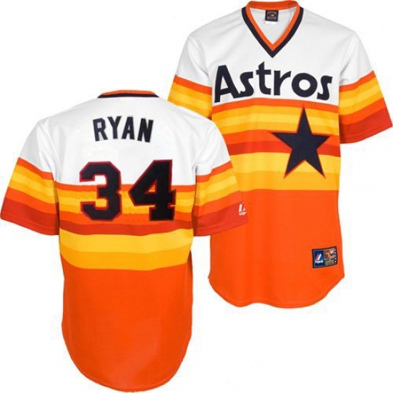 Men's Mitchell and Ness Houston Astros #34 Nolan Ryan Replica White/Orange Throwback MLB Jersey
