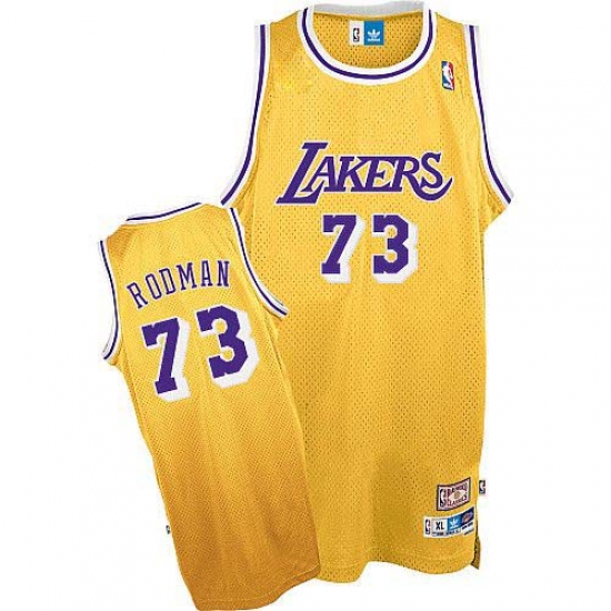 Home>NBA>Los Angeles Lakers>Dennis Rodman>Men's Mitchell and Ness Los Angeles Lakers #73 Dennis Rodman Authentic Gold Throwback NBA Jersey