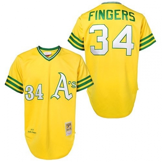 Home>MLB>Oakland Athletics>Rollie Fingers>Men's Mitchell and Ness Oakland Athletics #34 Rollie Fingers Replica Gold Throwback MLB Jersey