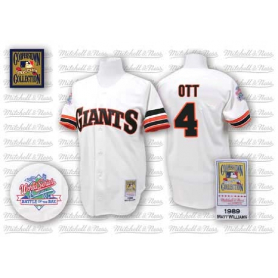 Men's Mitchell and Ness San Francisco Giants #4 Mel Ott Authentic White Throwback MLB Jersey