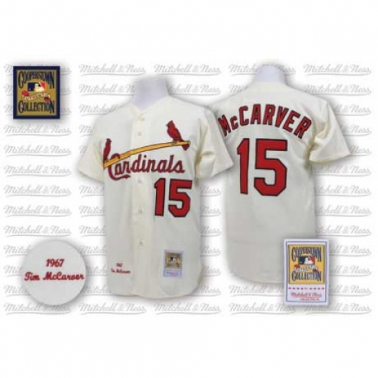 Men's Mitchell and Ness St. Louis Cardinals #15 Tim McCarver Replica Cream Throwback MLB Jersey