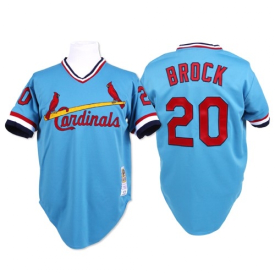 Men's Mitchell and Ness St. Louis Cardinals #20 Lou Brock Replica Blue Throwback MLB Jersey