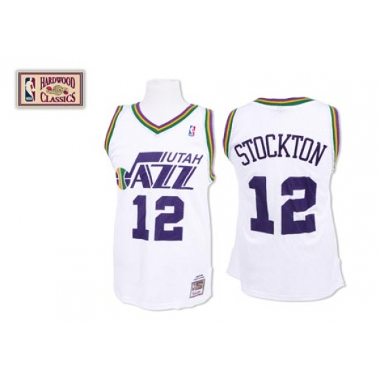 Home>NBA>Utah Jazz>John Stockton>Men's Mitchell and Ness Utah Jazz #12 John Stockton Authentic White Throwback NBA Jersey