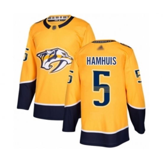 >Men's Nashville Predators #5 Dan Hamhuis Authentic Gold Home Hockey Jersey