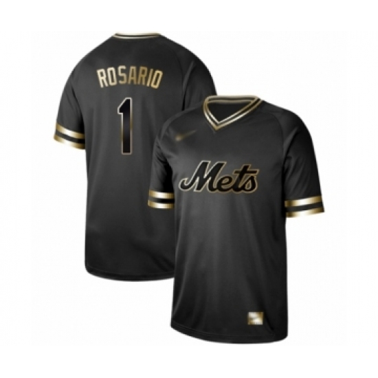 Men's New York Mets #1 Amed Rosario Authentic Black Gold Fashion Baseball Jersey