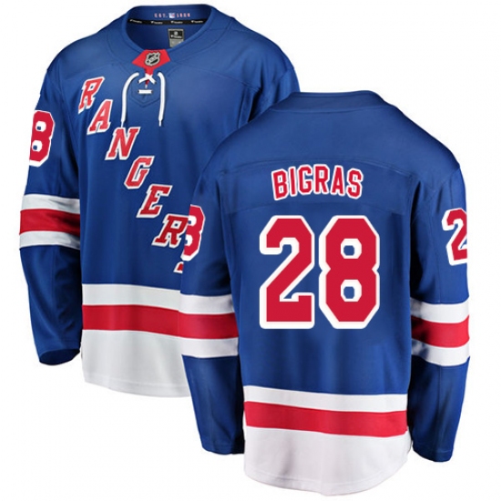 >Men's New York Rangers #28 Chris Bigras Fanatics Branded Royal Blue Home Breakaway NHL Jersey