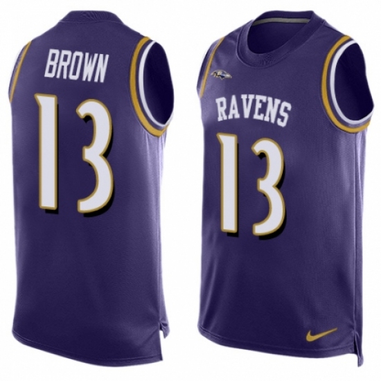 Men's Nike Baltimore Ravens #13 John Brown Elite Purple Player Name & Number Tank Top NFL Jersey