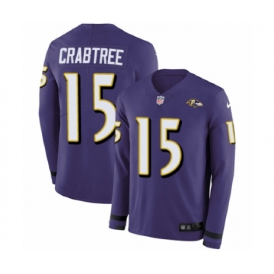>Men's Nike Baltimore Ravens #15 Michael Crabtree Limited Purple Therma Long Sleeve NFL Jersey