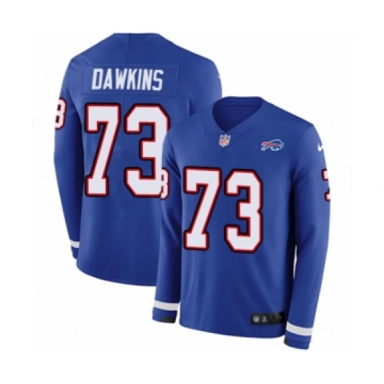 >Men's Nike Buffalo Bills #73 Dion Dawkins Limited Royal Blue Therma Long Sleeve NFL Jersey