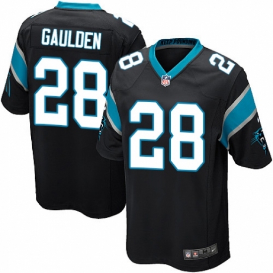 >Men's Nike Carolina Panthers #28 Rashaan Gaulden Game Black Team Color NFL Jersey